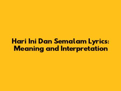 Hari Ini Dan Semalam Lyrics: Meaning And Interpretation
