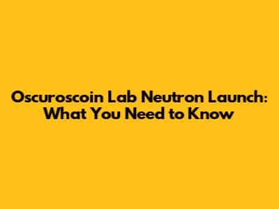 Oscuroscoin Lab Neutron Launch: What You Need To Know