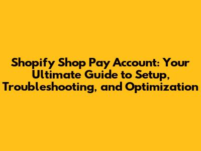 Shopify Shop Pay Account: Setup & Optimization